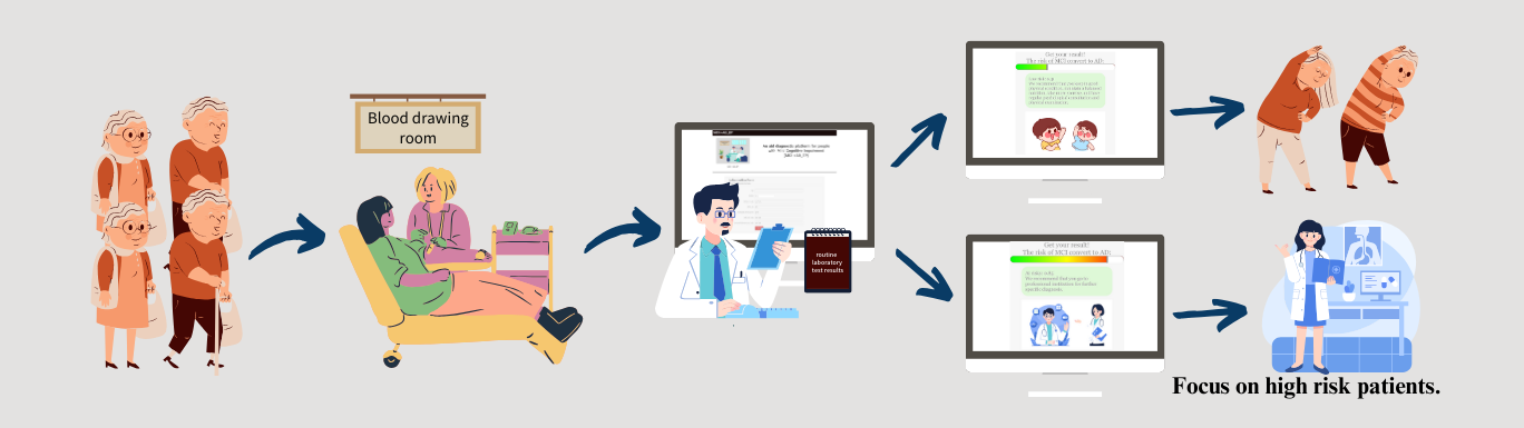 In this work, 210 blood biomarkers were analyzed from 43579 AD patients and 4874 MCI patients accumulated in Hongkong from 2000 to 2019. Student's t-test finds that the average hemoglobin, hematopoietic cell transplantation, and red blood cells of AD are lower, while Neutrophil and white blood cell are higher, compared to MCI. The machine learning model was trained using those biomarkers, and the AUC reached 70%.
